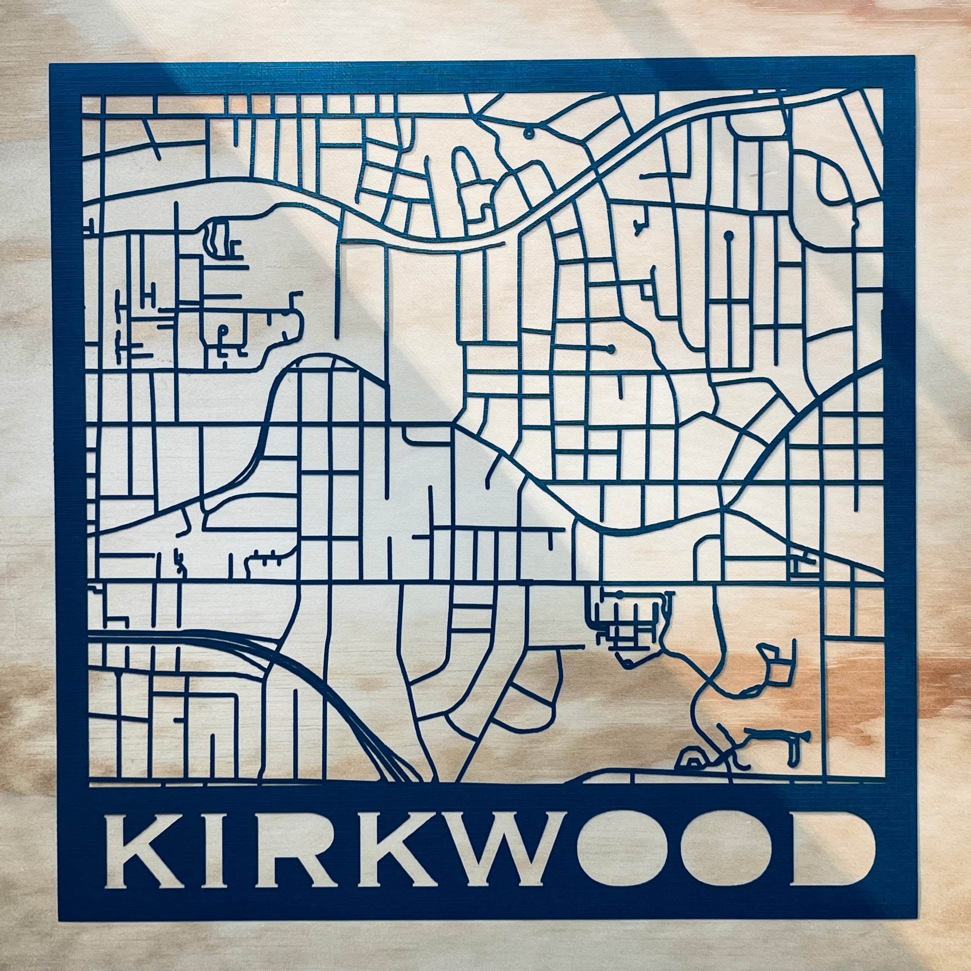 Cut Cardstock map of Kirkwood Neighborhood on the East side of Atlanta GA.