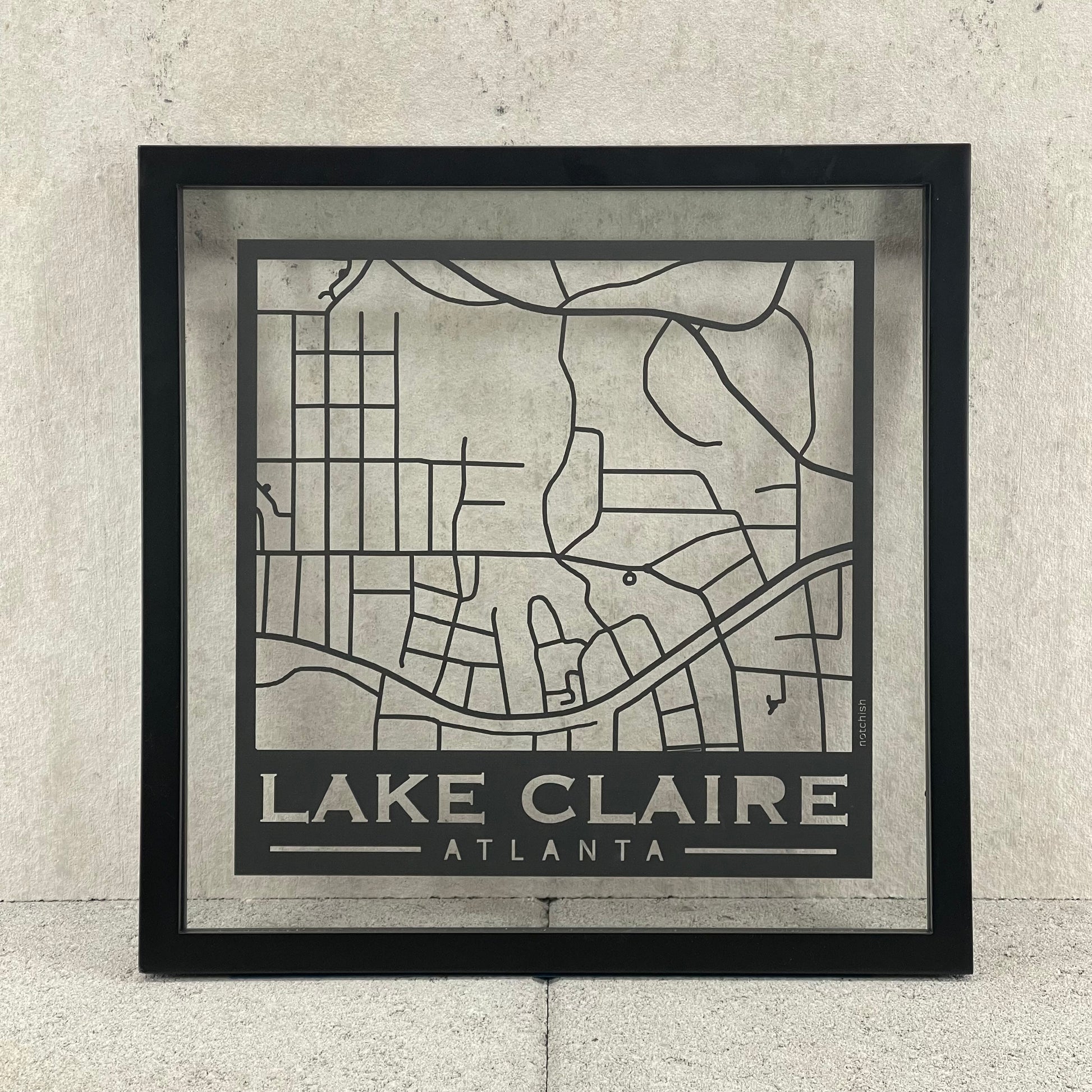 Cut Cardstock map of Lake Claire Neighborhood in Atlanta GA.