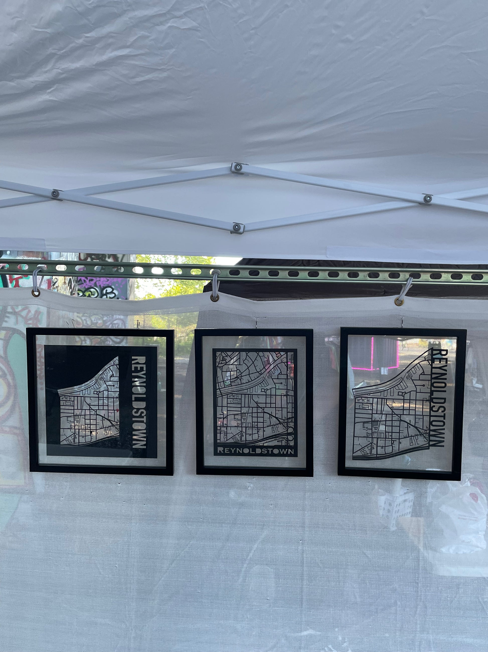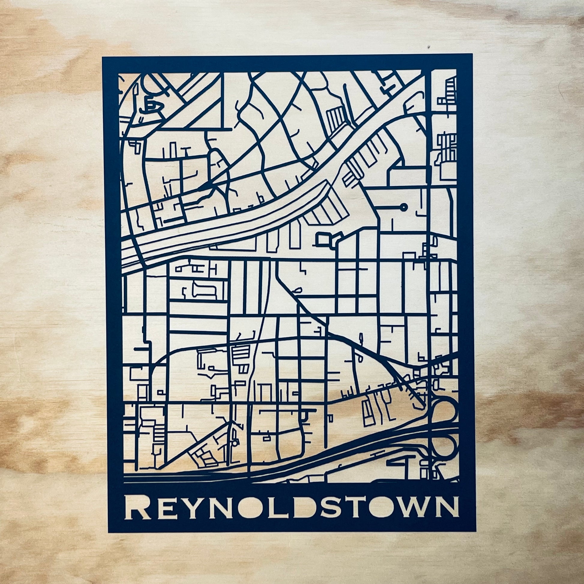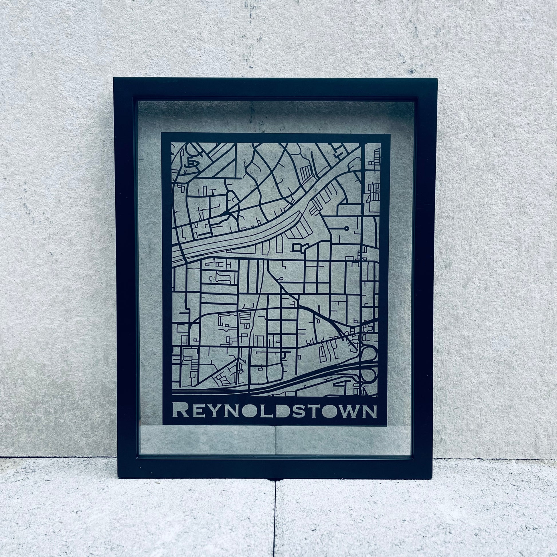 Cut Cardstock map of Reynoldstown Neighborhood in Atlanta GA.