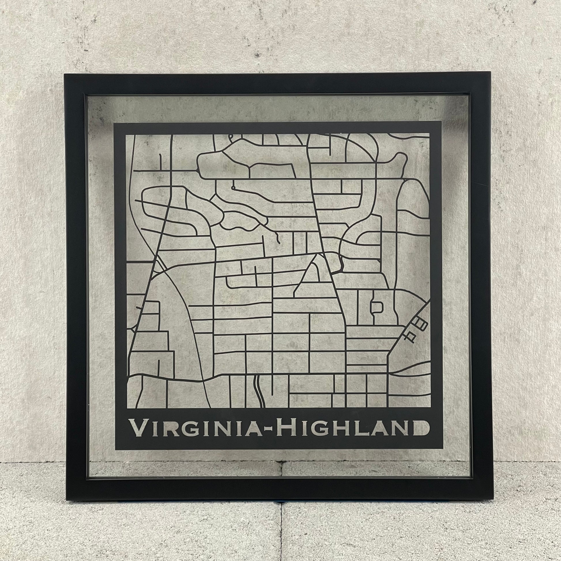Cut Cardstock map of Virginia-Highland Neighborhood in Atlanta GA.