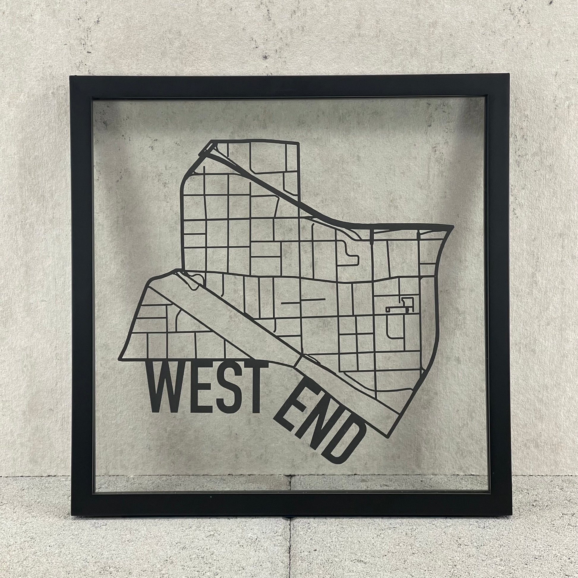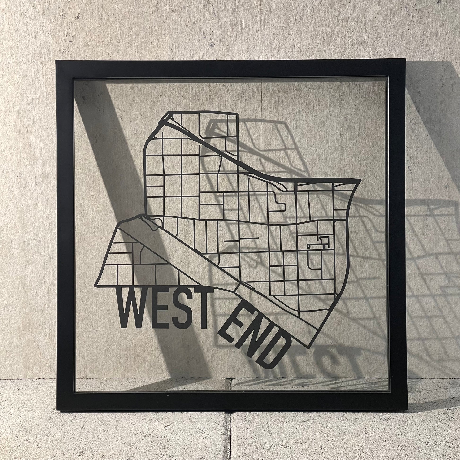 Cut Cardstock map of West End Neighborhood in Atlanta GA.